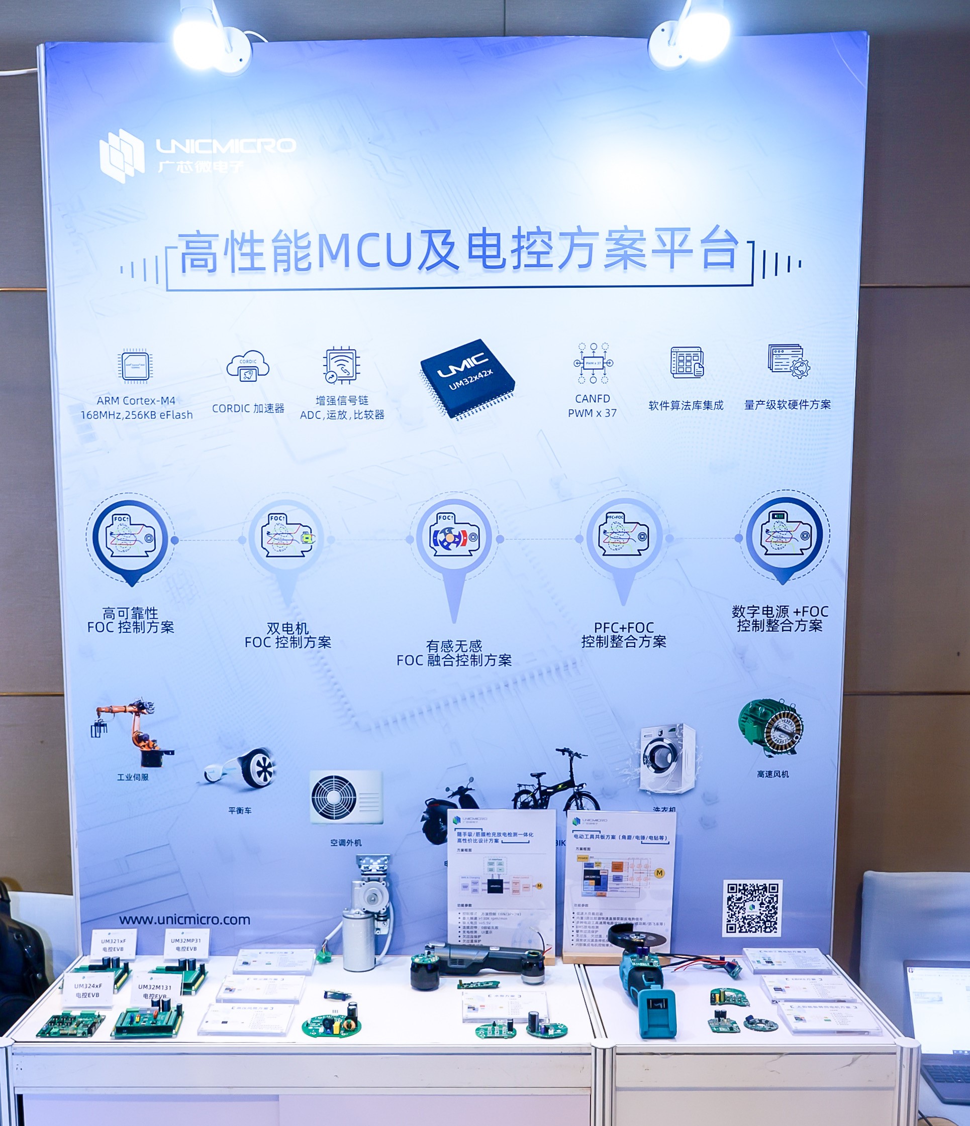 本次大會(huì)廣芯微還展出了面向雙電機(jī)、伺服電機(jī)控制等高端產(chǎn)品應(yīng)用的電控MCU UM32x42x,芯片采用Cortex-M4核,最高工作頻率為168MHz,256KB eFlash,64KB SRAM配置,芯片支持高速CAN-FD接口,模擬信號(hào)鏈,硬件加密算法,硬件加速運(yùn)算協(xié)處理器等,并針對(duì)單/雙/三電阻FOC控制需求,定制設(shè)計(jì)的高速多路PWM,支持硬件移相控制功能,最高分辨率達(dá)到1.48ns、2個(gè)高速ADC(5.25Msps)、內(nèi)置多路高速比較器與高速運(yùn)放,模擬電路針對(duì)FOC控制與各種外設(shè)做了豐富的聯(lián)動(dòng),既能發(fā)揮極致性能,同時(shí)也最大化簡(jiǎn)化外圍電路,節(jié)省成本、提高可靠性。該產(chǎn)品核心配置參數(shù)如下: