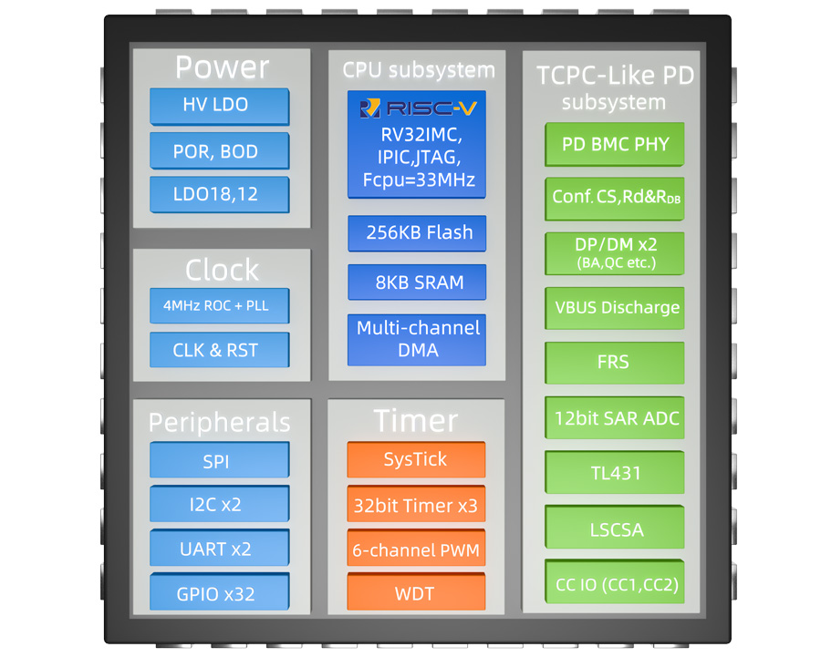 UM3506芯片集成了USB PD 3.0, PD3.1控制器和一個(gè)更加具有開放性,靈活性的RISC-V 內(nèi)核處理器。該系列產(chǎn)品可以用來(lái)支持增強(qiáng)型PD應(yīng)用。該款芯片全面滿足USB開發(fā)者論壇組織定義的USB 3.1標(biāo)準(zhǔn)集里面的相關(guān)規(guī)范。