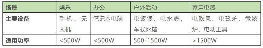 用戶通過應(yīng)用場景來選擇電池容量和輸出功率,便攜式儲能品牌按不同的功率規(guī)格設(shè)立系列產(chǎn)品來滿足多樣化場景需求。