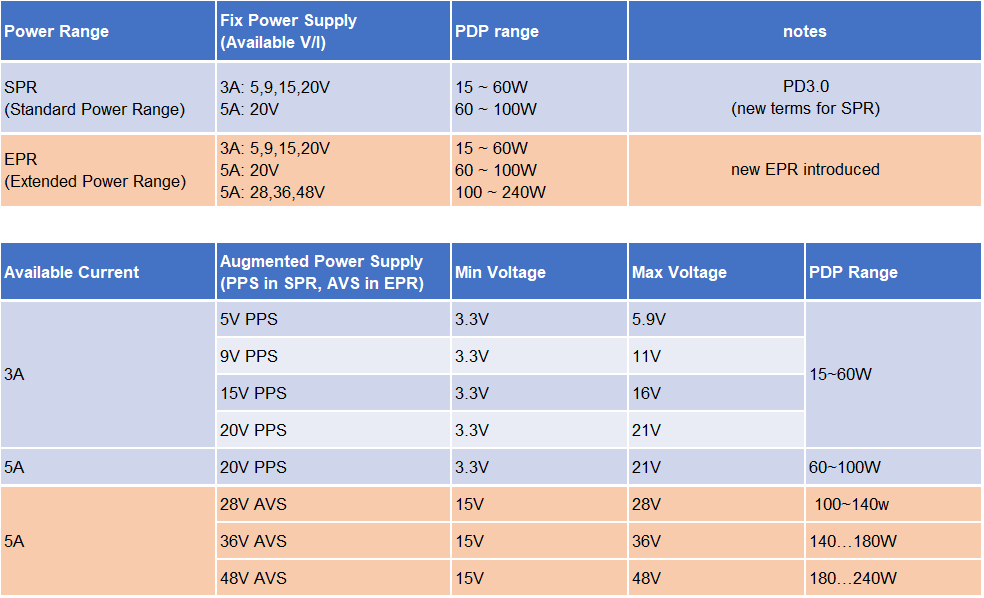 2021年6月2日,USB協(xié)會(USB-IF)公布最新USB Power Delivery規(guī)范3.1版本(簡稱PD 3.1),擴(kuò)展了EPR功率范圍,將充電電壓標(biāo)準(zhǔn)提升至48V,讓USB PD充電功率從先前最高100W提升至240W,并搭配全新的定義及更嚴(yán)謹(jǐn)?shù)碾娫赐ㄓ崊f(xié)議,提供更為安全且高功率的充電,擴(kuò)展使用范圍,極大地提升了標(biāo)準(zhǔn)對更為廣泛的使用場景的適應(yīng)能力。